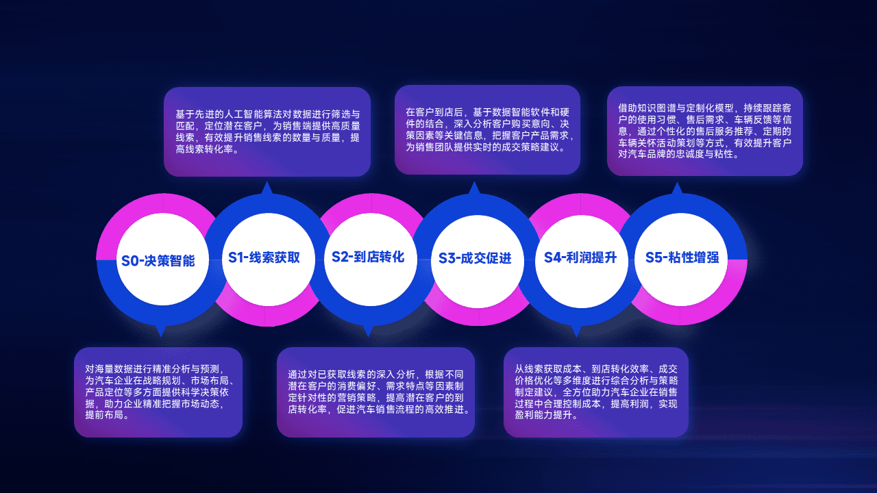 通过拓宽潜在客户来源、、、、优化线索分配并提高到店转化率,,以增强销售效率。。。同时,,利用线索数据不断优化分析模型,,,有效提升转化率,,,扩大营销影响力。。。
